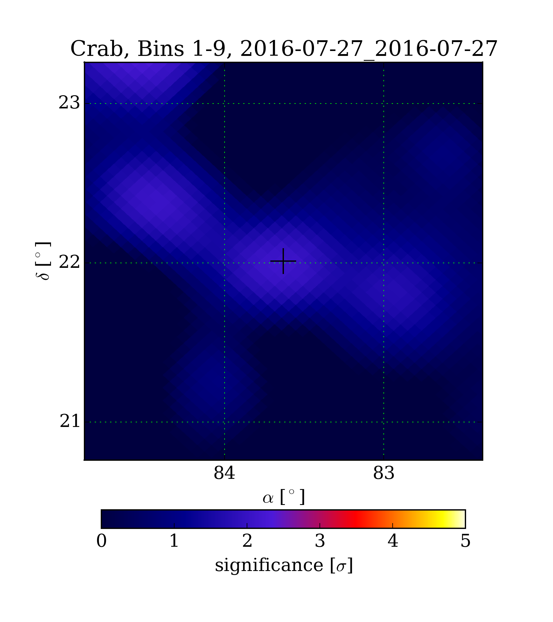 | Min: | -1.80 | ( 84.70 deg, 21.77 deg) | | Max: | 2.34 | ( 84.47 deg, 23.27 deg) | | Significance at Crab: | 2.12 | (at Crab) |