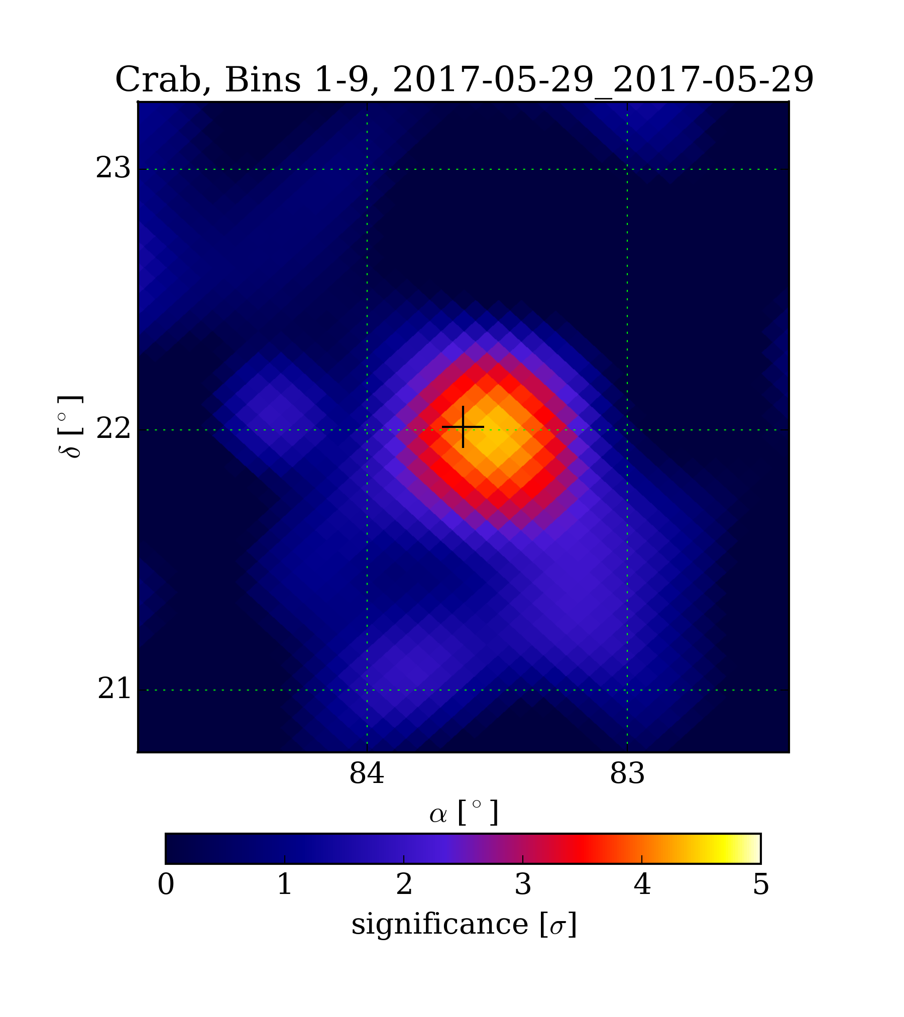 | Min: | -1.84 | ( 83.41 deg, 22.78 deg) | | Max: | 4.43 | ( 83.50 deg, 21.97 deg) | | Significance at Crab: | 4.22 | (at Crab) |