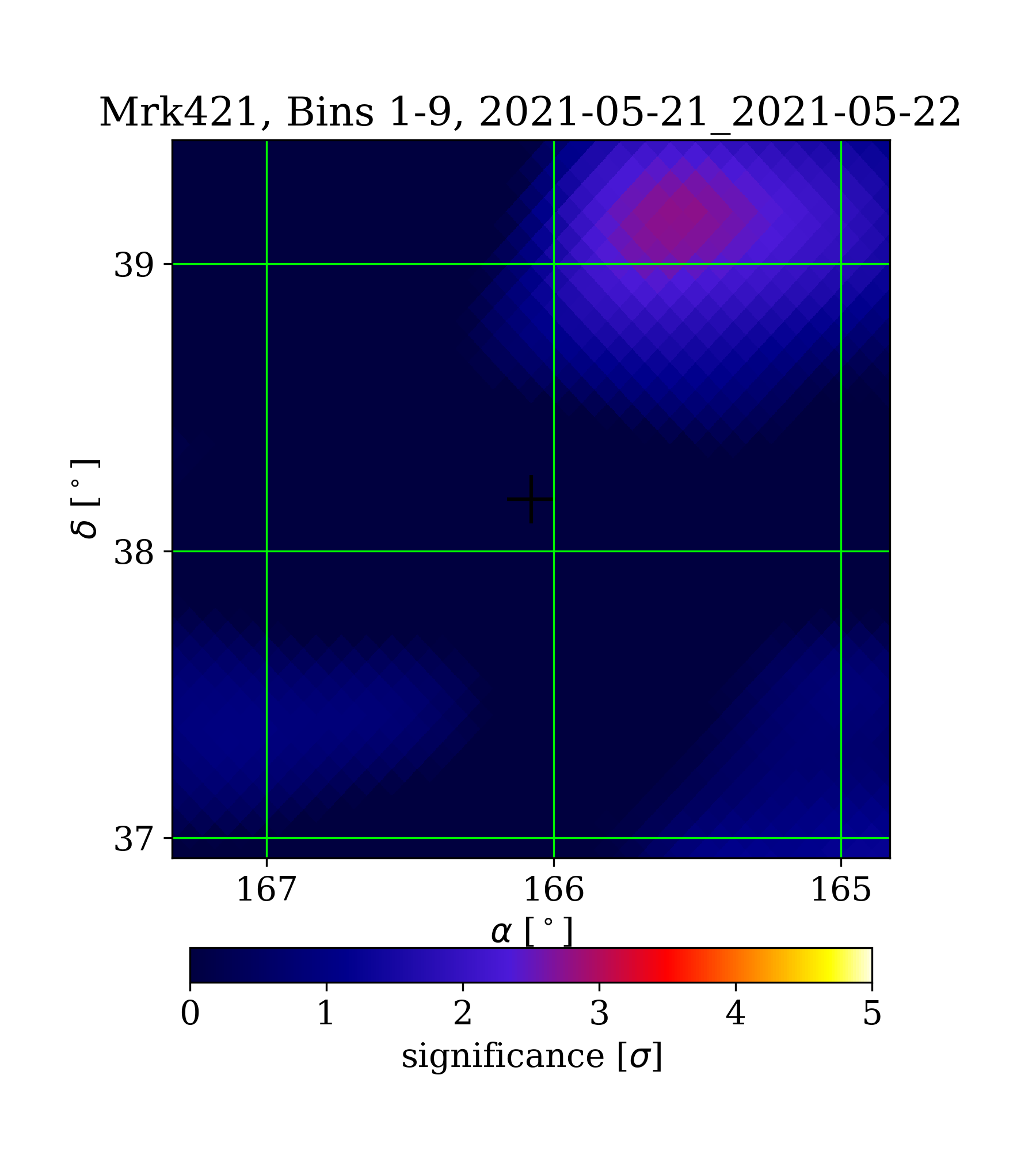 | Min: | -2.23 | (166.87 deg, 38.65 deg) | | Max: | 2.76 | (165.60 deg, 39.18 deg) | | Significance at Mrk421: | -1.24 | (at Mrk421) |