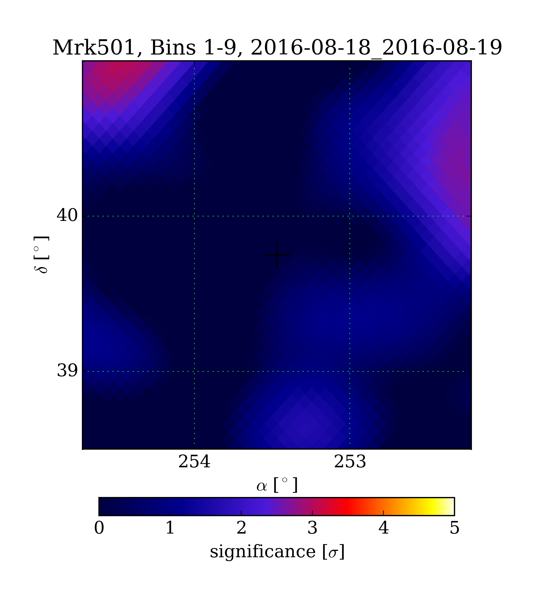 | Min: | -1.48 | (254.08 deg, 39.67 deg) | | Max: | 3.04 | (254.44 deg, 41.04 deg) | | Significance at Mrk501: | -0.08 | (at Mrk501) |