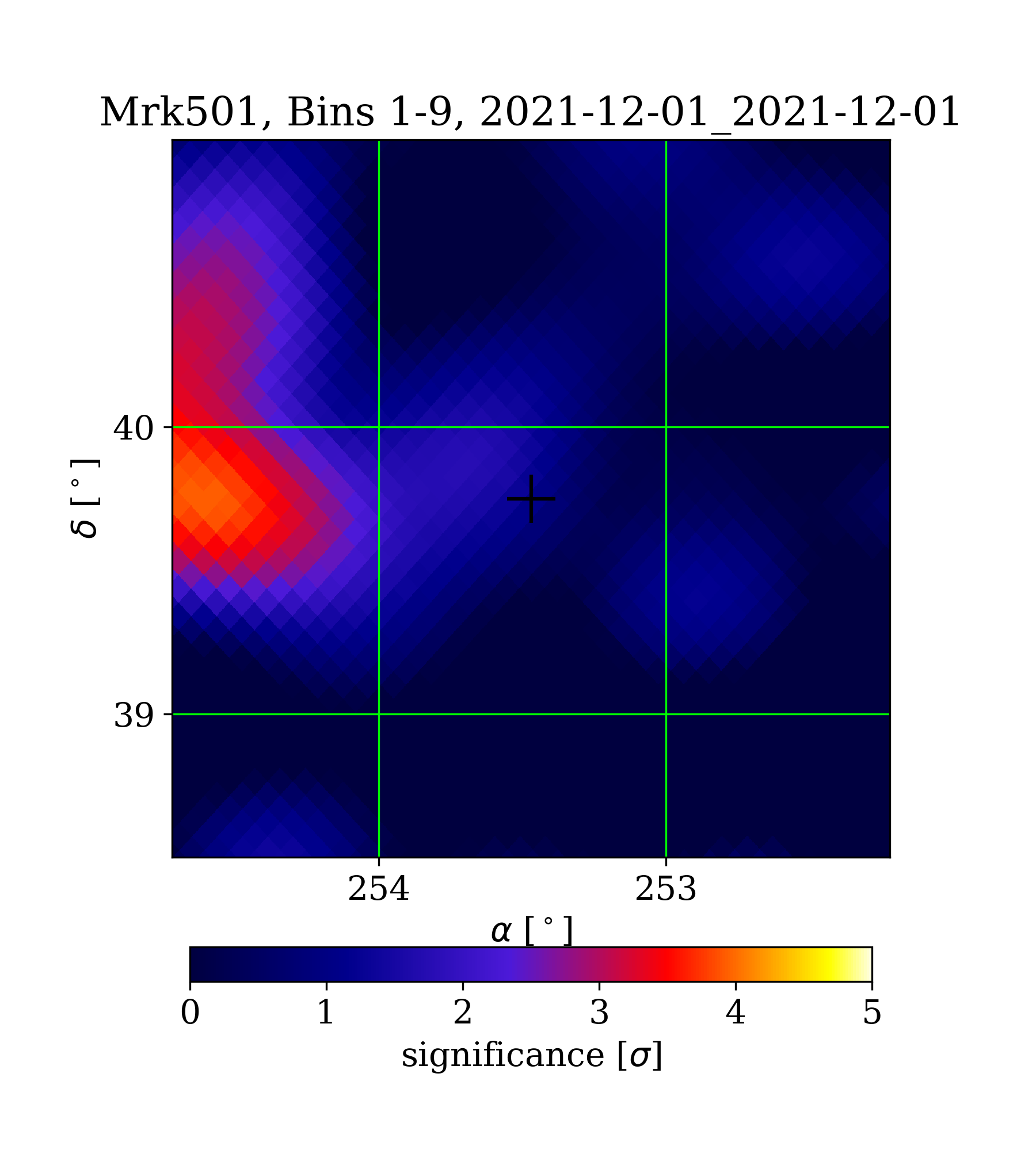 | Min: | -2.08 | (252.59 deg, 38.86 deg) | | Max: | 3.94 | (254.66 deg, 39.77 deg) | | Significance at Mrk501: | 1.09 | (at Mrk501) |